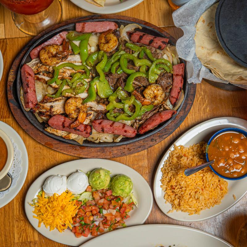 For 1 $21.99 | For 2 $39.99 • Your choice of beef, chicken, or combination fajitas set on grilled onions and topped with bell peppers.
